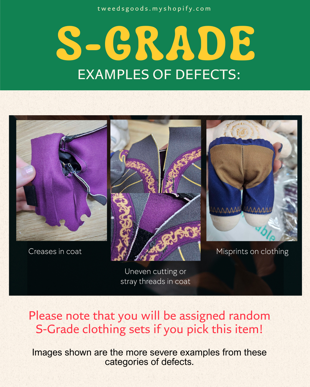 - By purchasing an S-GRADE item, you are aware of and choose to accept the imperfections as shown.
